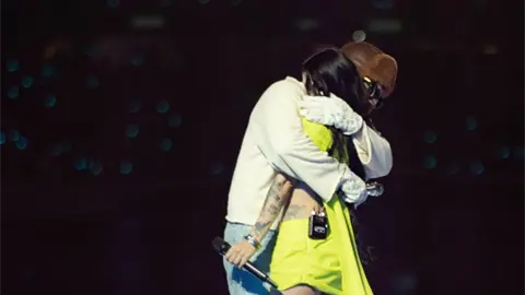 Enardecidos, los fans argentinos del "Conejo malo" corearon la canción y estallaron en gritos y aplausos cuando Cazzu y el cantante boricua se abrazaron, pues ese gesto los remontó a la época en que entablaron un fugaz romance que, en su momento, fue de conocimiento de muy pocos.