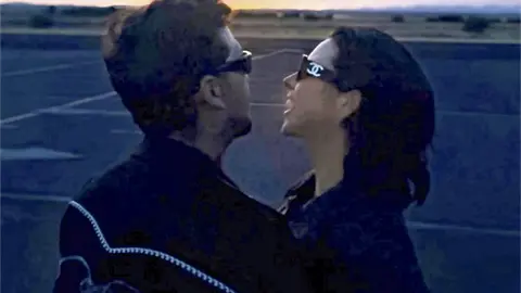 En la segunda foto aparecen los tres sonrientes y encimados en uno de los asientos del avión; Christian abraza a Ángela.
