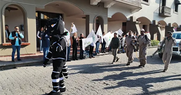 Esta mañana, autoridades del Ayuntamiento, encabezados por el secretario del Ayuntamiento, Luis Ángel Contreras Malibrán y Larisa Guevara Rodríguez de la Jurisdicción Sanitaria V, dieron el banderazo de salida a trabajadores de ambas instituciones para comenzar la primera Semana de Saneamiento que pretende ayudar a los vecinos de las colonias donde más huevecillos de zancudo se han encontrado, a deshacerse de cualquier trasto que pudiera servir como criadero del zancudo.