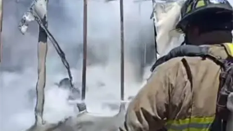 Los tragahumo trabajaron varias horas para lograr apagar el fuego y enfriar el camión para evitar que volvieran a reactivarse las llamas.