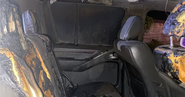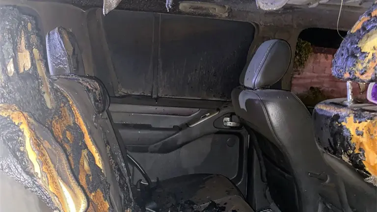 El fuego aparentemente inició en los asientos traseros. Se presume que fue provocado y que el responsable también quemó un montón de basura en un predio cercano; sin embargo, no fue identificado.