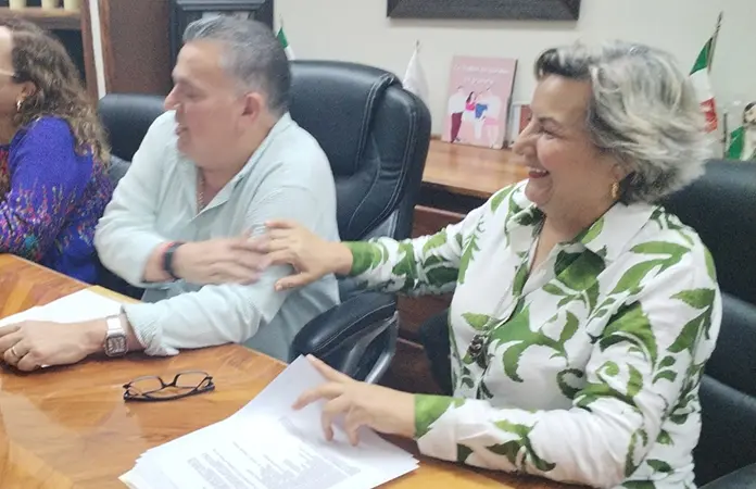 CIUDAD VALLES.- Ante la pregunta sobre si David Medina Salazar, alcalde del Verde, invitaría al partido a Rebeca Terán Guevara, actual directora de la Instancia Municipal de la Mujer, hubo sonrisas pero no afirmaciones sobre el asunto.