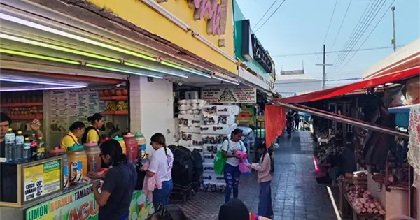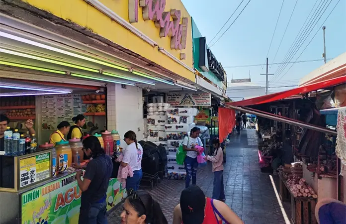 Este martes, en la banqueta del mercado, sobre la calle Negrete, el agua negra comenzó a contaminar ésta y la calle Madero, debido a un taponamiento de los desagües.