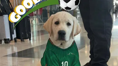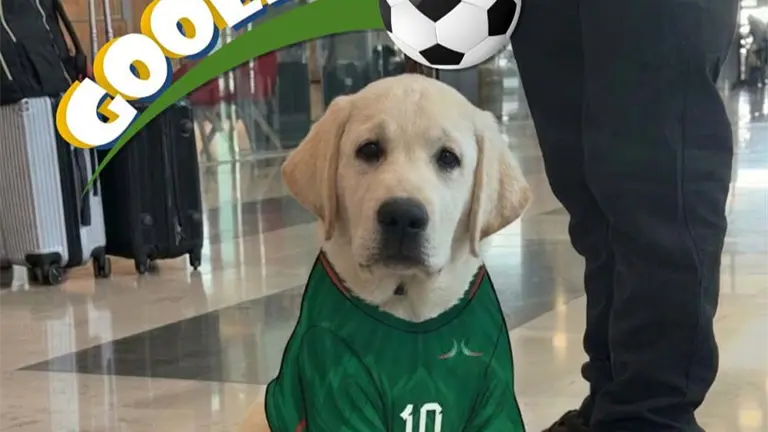 "El nuevo integrante del #EscuadrónCanino del #AIFA que viene a tirar gol... pero de ternura. ¿Listos para conocerlo?", publicó en sus redes sociales el Aeropuerto Internacional Felipe Ángeles.
