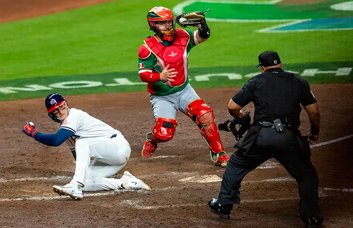 La novena mexicana no encontró respuesta hasta el sexto episodio. Primero, el jardinero tricolor de los Red Sox, Jarren Duran, se voló la barda con un batazo al jardín izquierdo. Después, un sencillo de Joey Meneses provocó un error de Brice Turang que derivó en la segunda carrera azteca, a nombre de Jonathan Aranda. En la lomita, el relevista Daniel Duarte logró dominar a Bryce Harper, a Kyle Schwarber y a Judge.