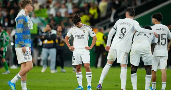 El encuentro comenzó bien para el Madrid, que jugaba como visitante, ya que Vinicius Junior anotó por segunda vez en cuatro días. El portero del Betis, Álvaro Valles, solo pudo rechazar el disparo de larga distancia de Federico Valverde y el delantero brasileño aprovechó para empujar el rebote a la red.