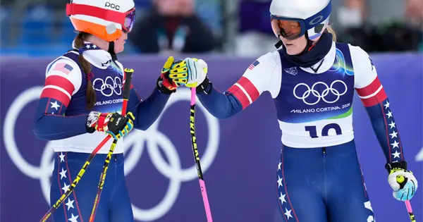 En la meta, Vonn intercambió choques de puños y un abrazo con su compañera de equipo Breezy Johnson, quien bajó inmediatamente antes que ella y se ubicó en sexto lugar, después de un retraso de casi una hora debido a la niebla.