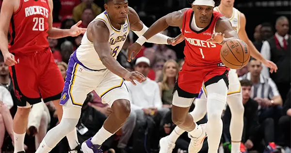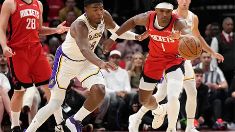 Houston ganaba por 23 con alrededor de 7½ minutos por jugar cuando el entrenador JJ Redick vació la banca de los Lakers.