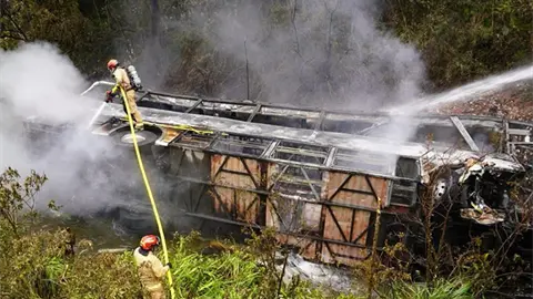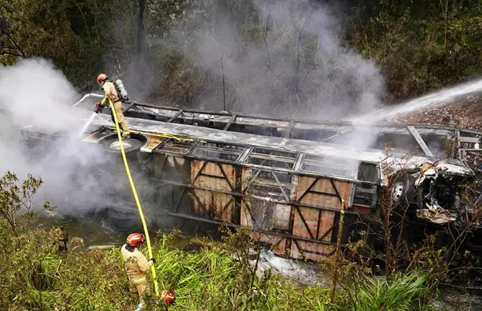 "El bus se envolvió en fuego y hay víctimas que estaban fuera del vehículo, en el río, y las otras que se encontraban en el interior", añadió Heras.