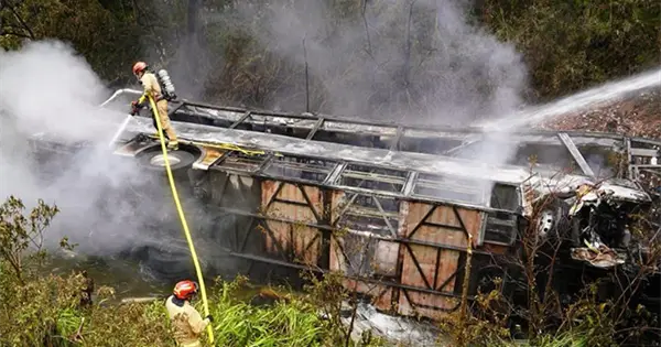 Cae autobús a un barranco y se incendia