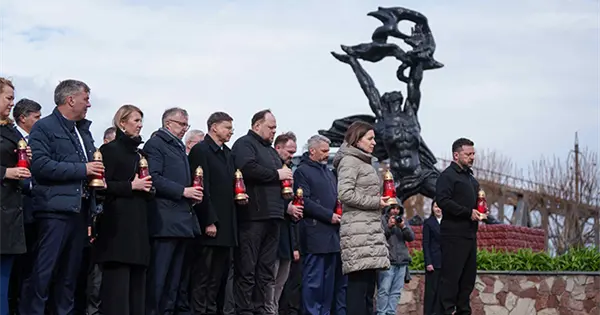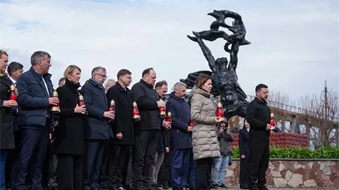 El presidente de Ucrania, Volodímir Zelenski, conmemoró el aniversario con una advertencia de que con los ataques rusos se corre el riesgo de repetir la historia.