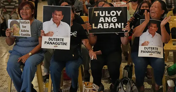Se considera que Duterte habría contribuido de forma esencial a estos crímenes al diseñar la política, dar instrucciones, proporcionar recursos, promover públicamente la violencia y garantizar protección e impunidad a los autores materiales.