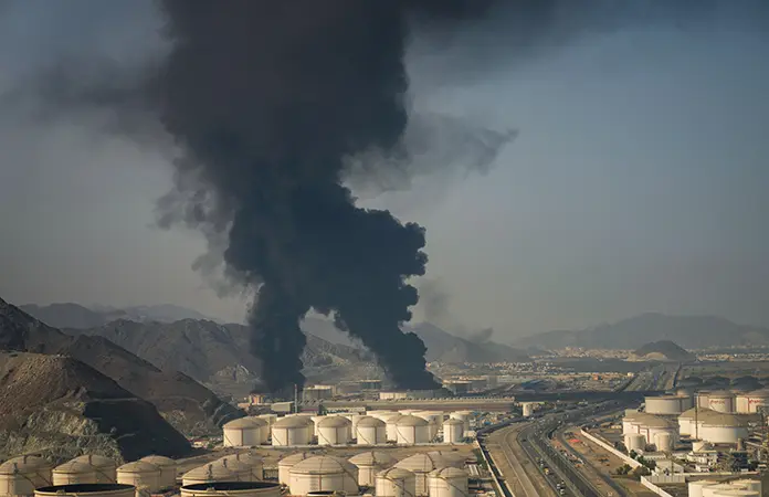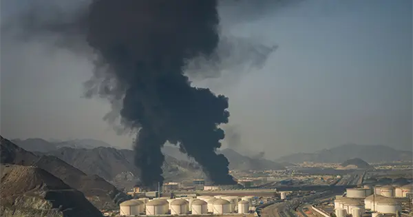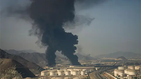 Los restos de un dron iraní interceptado que impactaron una instalación petrolera provocaron un incendio en el tercer puerto, en Fujairah.
