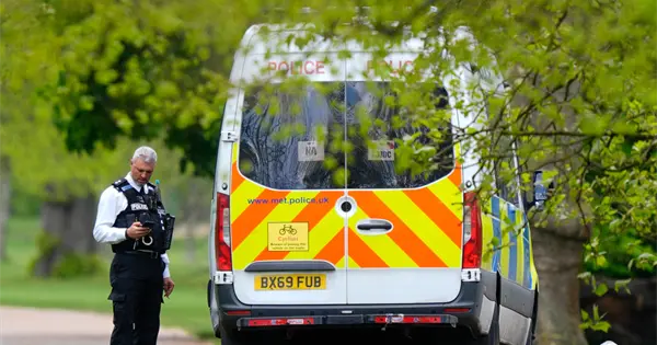 Se estableció un cordón y se restringió el acceso a los jardines y al área circundante. En el lugar se podían ver furgonetas policiales y una carpa blanca.