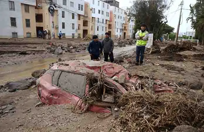 Lima, Perú.- Los cadáveres de un padre y su hijo fueron hallados el lunes por las autoridades de Perú en un paso estrecho de un poblado ubicado en la falda de una colina en la región Arequipa y ya suman cuatro los muertos durante el actual período de intensas lluvias en distintos puntos del país que también han causado daños en casas, caminos y campos agrícolas.