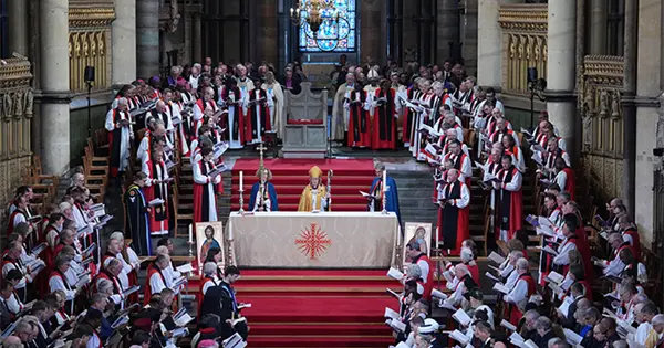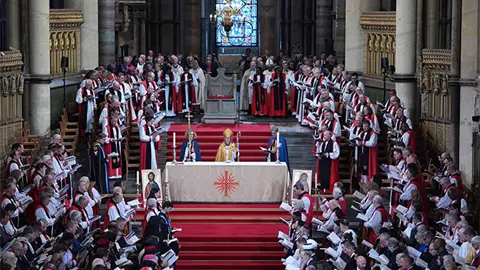 A la ceremonia en la Catedral de Canterbury asistieron el príncipe Guillermo, la princesa Catalina, el primer ministro británico Keir Starmer.