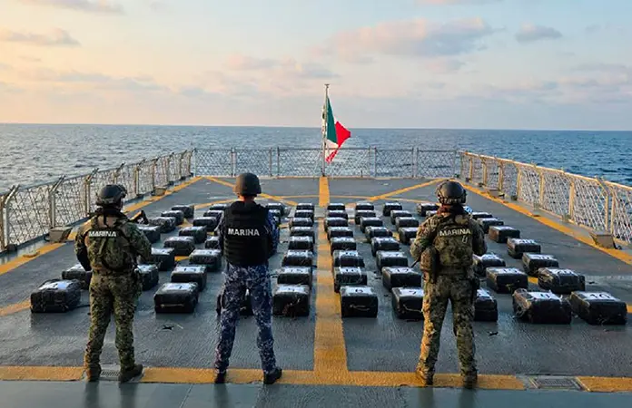 En redes sociales, el titular de la SSPC, Omar García Harfuch, indicó que "en la presente administración suman más de 60 toneladas de esta droga asegurada en aguas mexicanas".