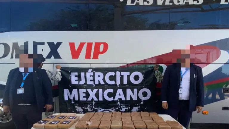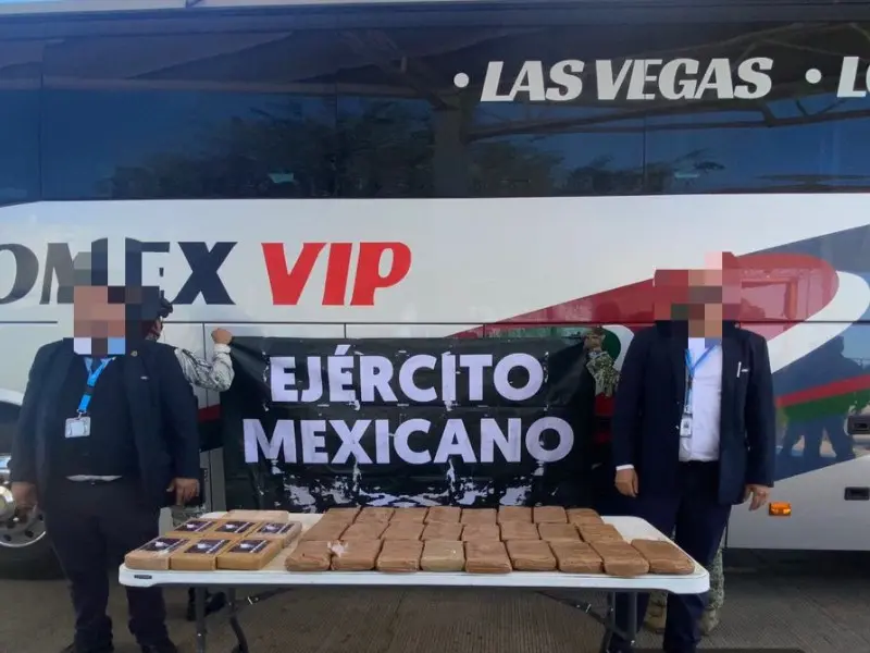 Elementos del Ejército Mexicano y de la Guardia Nacional aseguraron cocaína y goma de opio en un autobús de pasajeros que tenía como destino Estados Unidos; dos personas fueron detenidas.