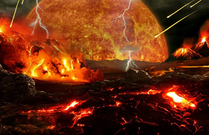 Cada joven planeta era una masa líquida de lava incandescente por el calor generado por tan violentos impactos. Los elementos pesados y metales como el hierro y níquel se hundían para formar un núcleo metálico.
