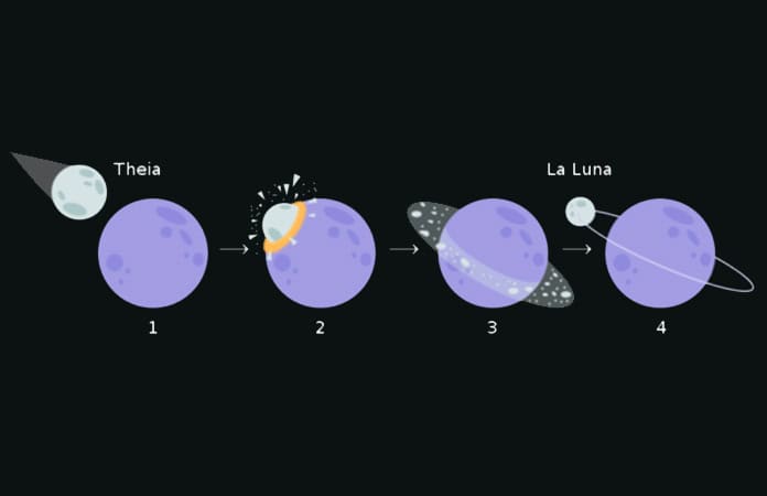 Hace 4,500 millones de años, en el recién formado sistema solar orbitaban un centenar de protoplanetas. Uno de ellos llamado Thea chocó con la Tierra y de los restos se formó la Luna.