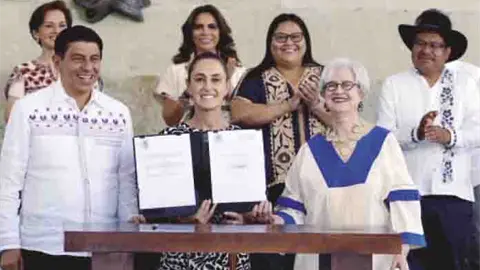Guelatao, Oax.- La presidenta Claudia Sheinbaum conmemoró el 220 aniversario del natalicio del presidente Benito Juárez García y firmó un decreto que reconoce a Margarita Maza Parada como primera embajadora histórica de la República Mexicana.