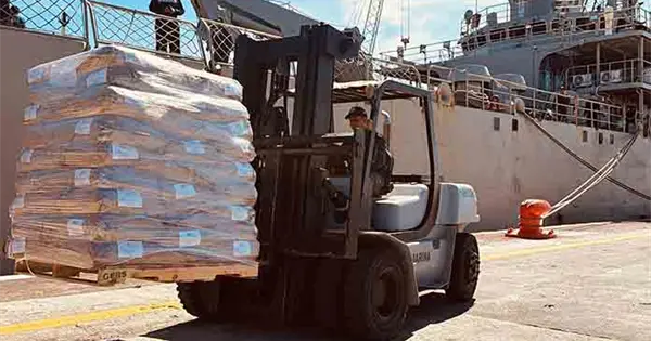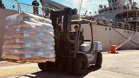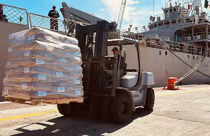 Mientras que en el buque Isla Holbox, precisó la SRE, "se embarcaron poco más 277 toneladas de leche en polvo para atenciones de ese mismo fin".