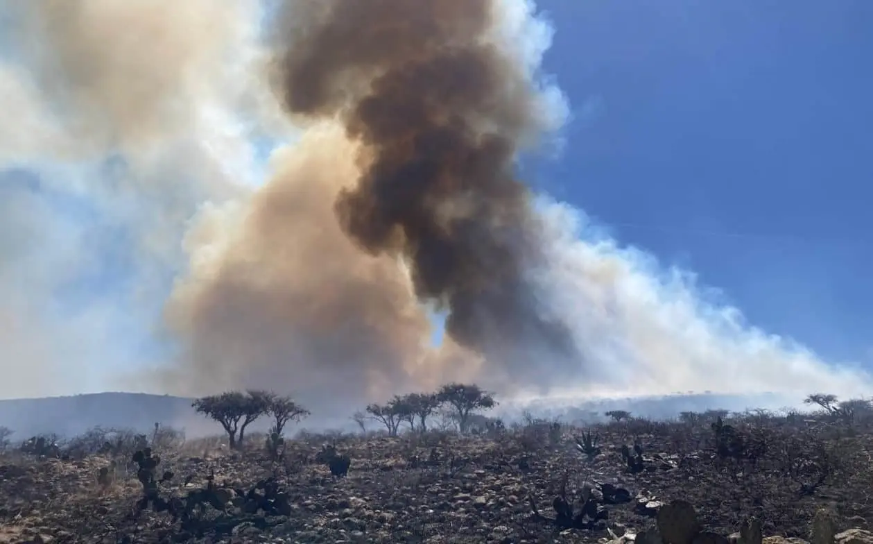 Un enorme incendio forestal mantiene a las autoridades en alerta en Mexquitic de Carmona.