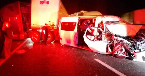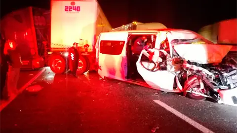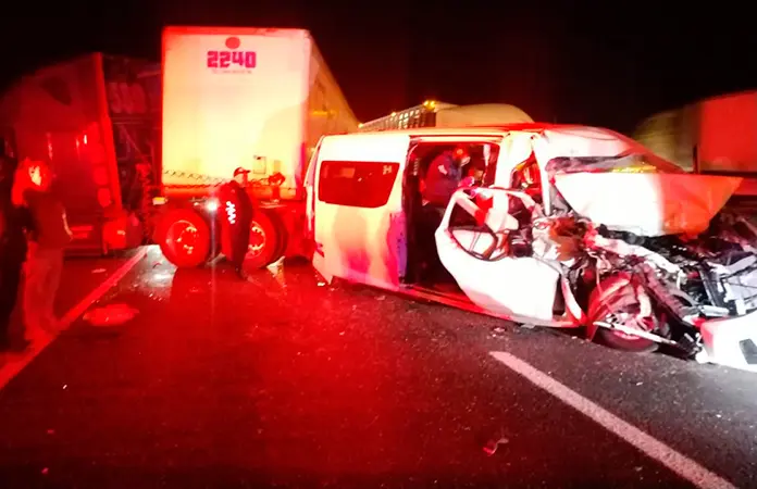 El hecho tuvo lugar cerca de las cinco de la mañana de este viernes en el kilómetro 145 de la carretera en mención,  en donde impactaron la camioneta de transporte de personal, una tipo combi color blanco, así como un tráiler de la empresa Transportes Reyna Toro, color blanco con remolque tipo caja.