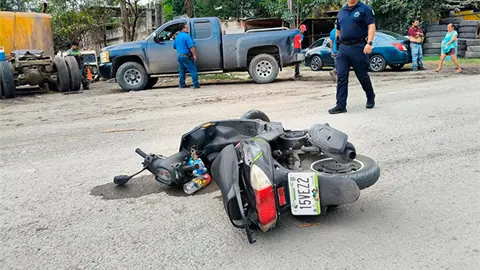 La motociclista perdió el control de su unidad y se cayó; posteriormente, la última llanta del camión le pasó encima, por lo que sufrió lesiones graves.