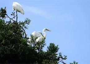 Rescatan bomberos garzas atrapadas en lo alto de un árbol