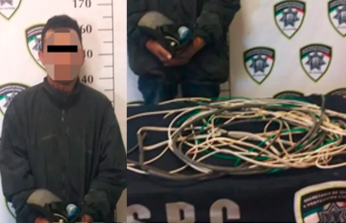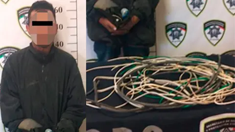 Ante estos hechos, el sujeto fue detenido junto con varios tramos de cableado eléctrico que ya había cortado dentro del inmueble, siendo trasladado al área de Justicia Cívica para su certificación médica y se le puso a disposición de la autoridad ministerial quien determinará su situación legal.