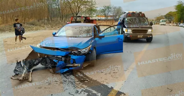 Una conductora se atravesó al intentar incorporarse a la carretera federal 85; la víctima sufrió un fuerte golpe en la cabeza
