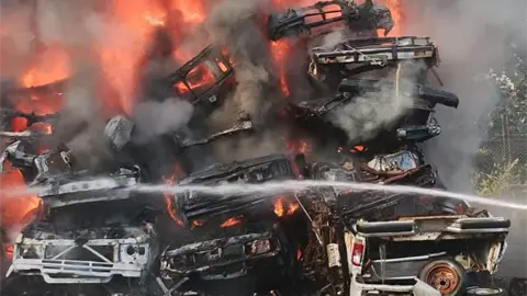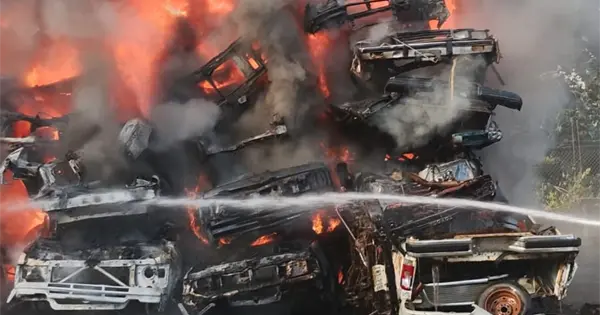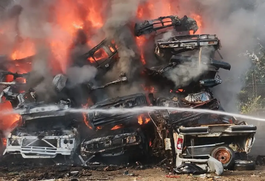 Fotos | Incendio en corralón consume decenas de autos