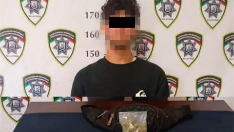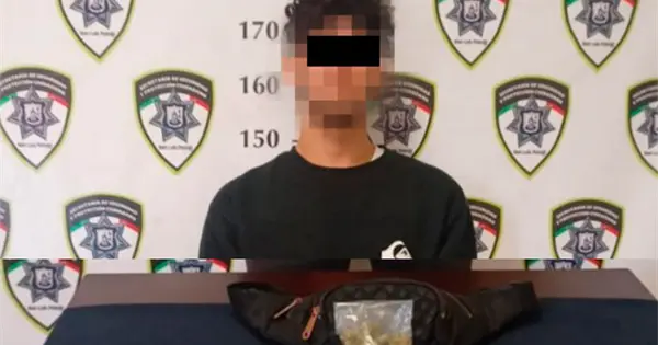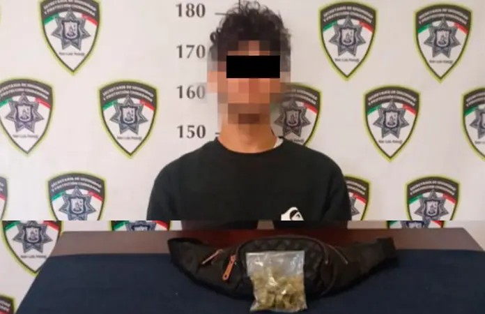 De esta manera, encontraron que portaba dentro de una cangurera, una bolsa de plástico transparente que contenía una hierba verde similar a la marihuana, con un peso aproximado de 13 gramos.