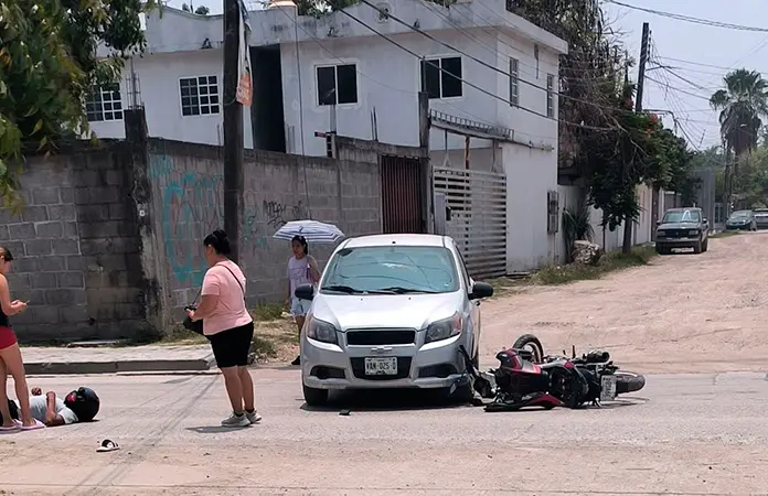 Fuentes oficiales informaron que la conductora de un vehículo Chevrolet gris cruzó sin precaución la calle Morelos, que es vía de preferencia, y le cortó la circulación al joven, quien circulaba en una moto, provocando la colisión.