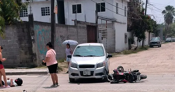 Supuestamente, el chofer del taxi 338 del sitio Negrete, realizó una maniobra y no se dio cuenta de que se aproximaba un motociclista, chocándolo.