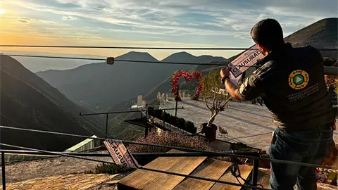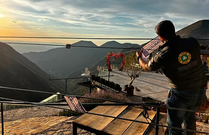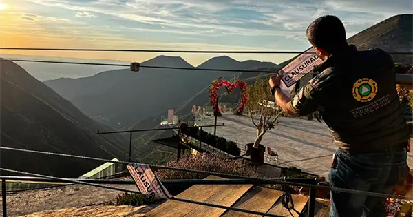REAL DE CATORCE.- Luego de fallo en su operatividad ya que una menor se quedó suspendida de un cable, poniendo en serio riesgo su vida, la Coordinación Estatal de Protección Civil procedió a la clausura de la tirolesa en el complejo turístico denominado El Águila Real, en el pueblo mágico de Real de Catorce.