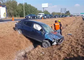 El reporte se recibió antes de las 11:00 de la mañana, cuando un peatón se atraviesa al paso del vehículo VW Jetta de color azul. Después de darle un leve golpe, el conductor pierde el control e impacta con el muro de contención para perder el control hacia su derecha e impactar a un Nissan March.