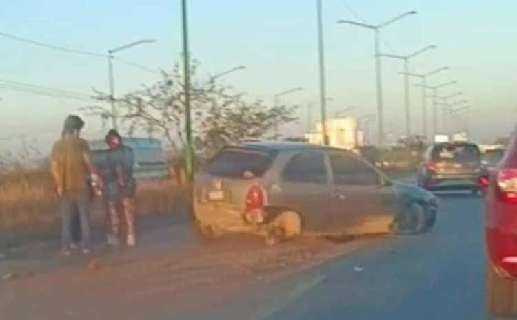 Un automóvil Chevrolet Chevy sufrió una salida de camino y choque contra la guarnición central cuando circulaba sobre la carretera de Ríoverde con dirección al distribuidor, sin que se reportaran personas lesionadas.