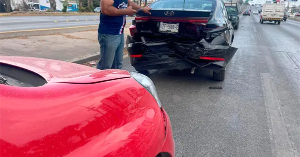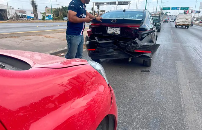Fue a la altura de la colonia Las Palmas, en donde el conductor no guardó su distancia de seguridad y de esta forma chocó de frente contra la parte posterior de un automóvil Nissan March de color rojo, al que a su vez proyectó contra otro automóvil Hyundai color negro que transitaba adelante.
