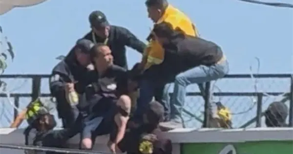 La oportuna y coordinada intervención de elementos de C4, Guardia Municipal, Policía Vial, Bomberos y Protección Civil Municipal SLP permitió rescatar a un hombre que intentó arrojarse desde el puente peatonal de carretera 57, frente a la Terminal Terrestre Potosina (TTP).