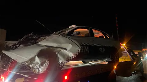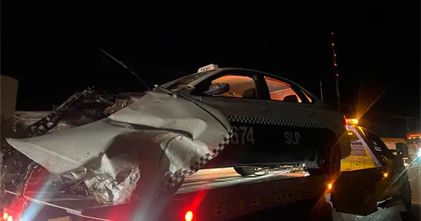 Cerca de las nueve de la noche del domingo, se reportó a los cuerpos de auxilio el choque de dos autos, tratándose del taxi Volkswagen Vento con número económico 1674, así como un auto particular Chevrolet Aveo.
