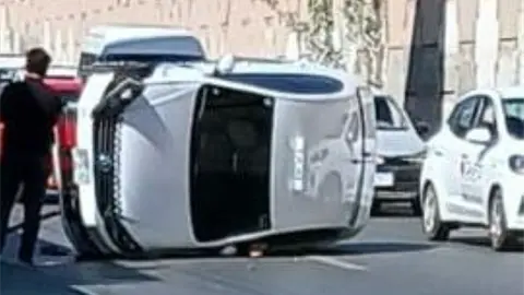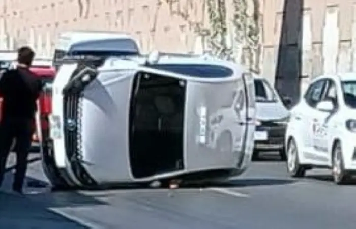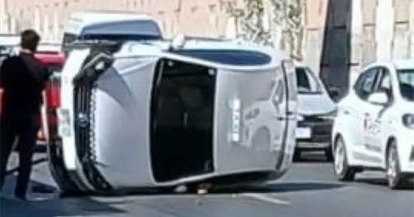 Una volcadura de un taxi se registró esta mañana en la lateral de Salvador Nava.