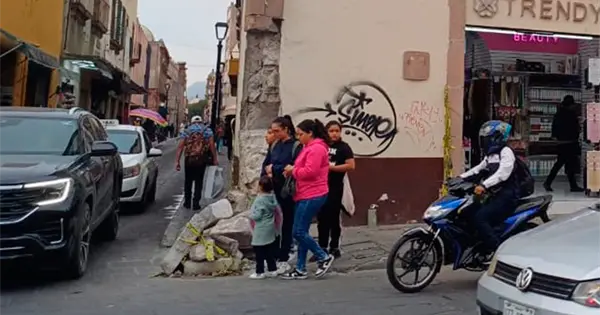 El desprendimiento de las piedras afectó aproximadamente tres metros desde la banqueta hasta la altura mencionada, lo que obligó a tomar medidas de aislamiento.