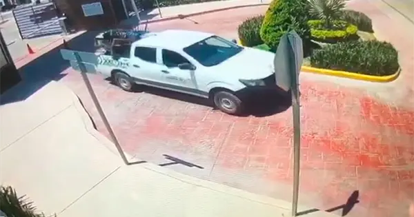 Cámaras de vigilancia del fraccionamiento Deván Residencial, ubicado en la avenida Gran Peñasco del municipio de Villa de Pozos, detectaron una camioneta tipo pick up, color blanco y de doble cabina, cuando salía cargada con muebles aparentemente siendo utilizada para mudanza de particulares.