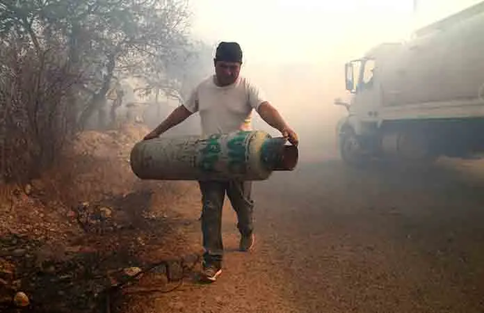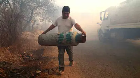 En el terreno, algunos pobladores abandonaban sus viviendas ante la cercanía del incendio, retirando algunas de sus pertenencias; mientras que decenas de elementos de varias dependencias federales, estatales y municipales lo combatían.