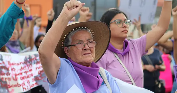 La jornada comenzó y el color morado pronto se extendió entre pancartas y pañuelos. Las consignas resonaban entre los edificios, mezcladas con cantos, testimonios y una energía que lo envuelve todo. Es imposible no conmoverse: en la marcha conviven las historias de niñas, jóvenes y mujeres que quizá participan por primera vez, con los rostros de quienes regresan cada año porque la violencia sistemática sigue atravesando sus vidas.