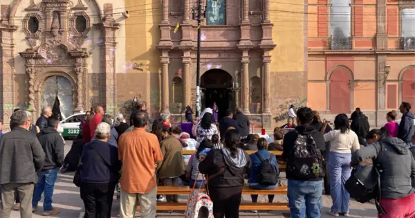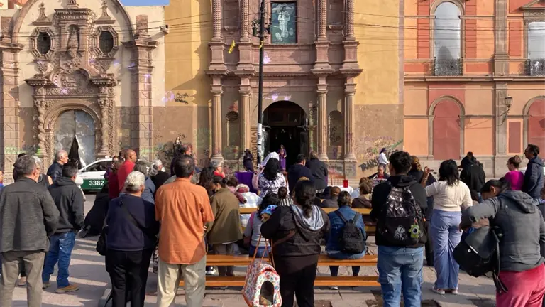 "Concédenos superar felizmente los horrores de la violencia, y que nos llenemos de amor y de justicia", pidió el presbítero Jorge Aurelio Ramírez Torres, al concluir la misa de desagravio que tuvo la Plaza de los Fundadores como escenario, luego de qué grupos feministas incendiaron la puerta principal y causaron destrozos a la fachada del templo del Sagrario a su cargo, también llamada "Parroquia La Compañía".