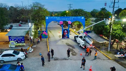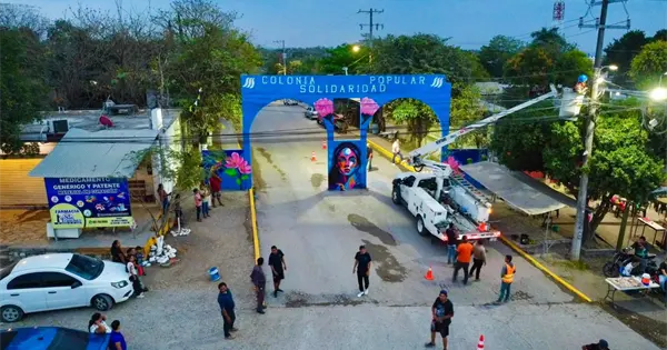 Vecinos y colectivos intervinieron con arte urbano y limpieza el acceso principal de la colonia Solidaridad