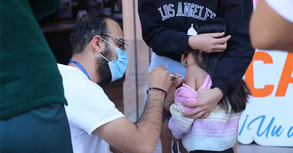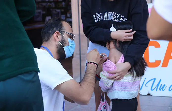 La campaña inició ayer lunes e incluye, además de la protección contra el sarampión, defensa contra la rubeola y la parotiditis. En este esfuerzo participa la Coordinación del Servicio Médico Municipal, la Unidad de Medicina Familiar y el IMSS Bienestar, con el propósito de frenar y evitar el aumento de contagios de sarampión en este municipio.